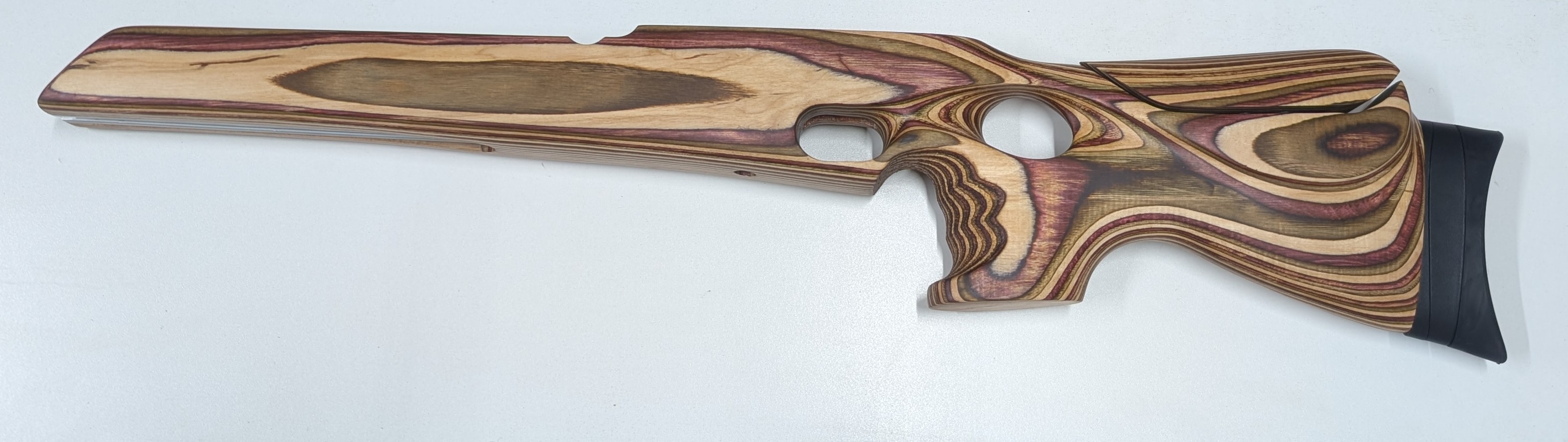 Right Hand laminate thumbhole As pictured, will fit TM, BM, HM and Theoben MK2 style actions with slim cylinder, UIT rail fitted to front, adjustable cheek mechanism and adjustable recoil pad.